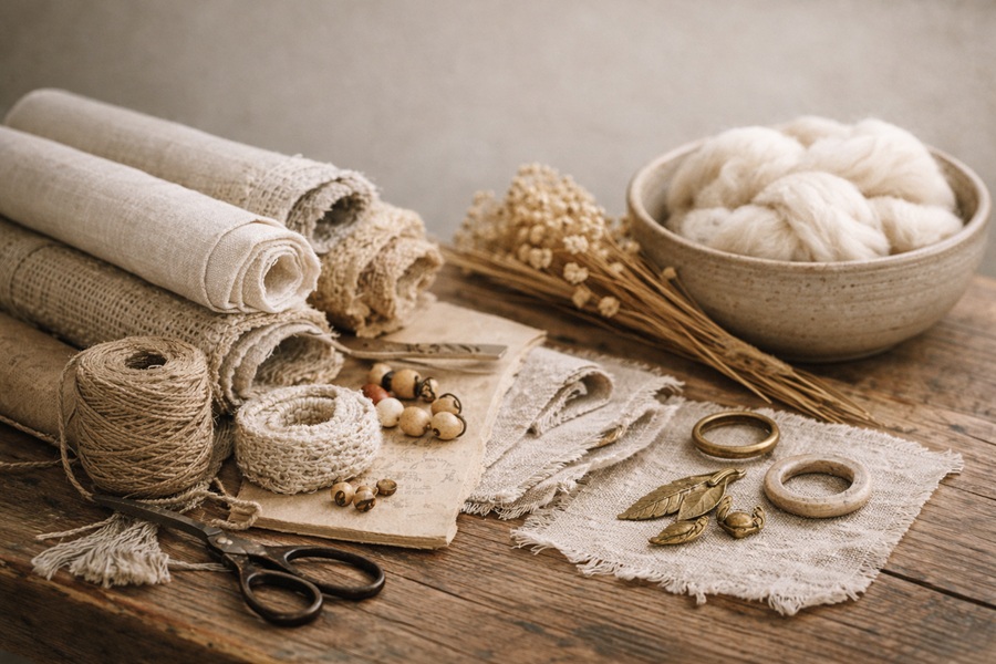 Pokud je vám blízký tento způsob tvorby – pomalý, vědomý a opravdový – možná Vás osloví i materiály, které v ateliéru vybíráme a připravujeme pro další tvoření.